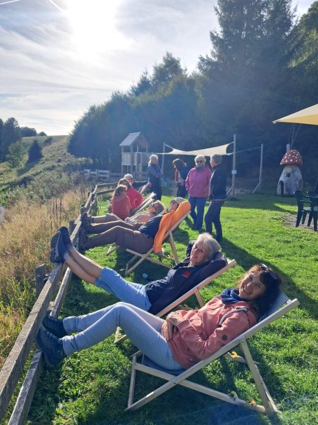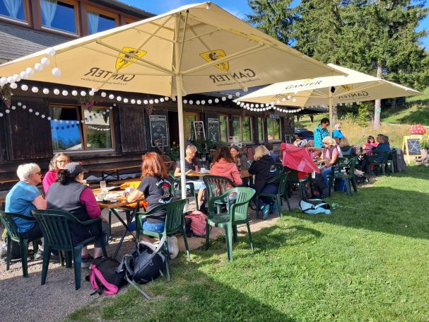 Nach einer kurzen Sommerpause waren die Black Forest Linedancer am 6./7.September Wochenende auf Wandertour. Wir sind mit dem Linienbus zum Notschrei gefahren. Von dort gings frohgelaunt und bei strahlendem Sonnenschein☀ in Richtung Knöpflebrunnen. Nach ca.4 Stunden Wanderzeit 🥾und einer kleinen Rast wurde die Almgaststätte Knöpflebrunnen erreicht ..Wir genossen den Abend bei Essen ,Trinken, Spiel und Tanz und zur später Stunde das Bett. Ausgeschlafen und gut gefrühstückt machten wir uns auf den Rückweg nach Todtnau. 😎